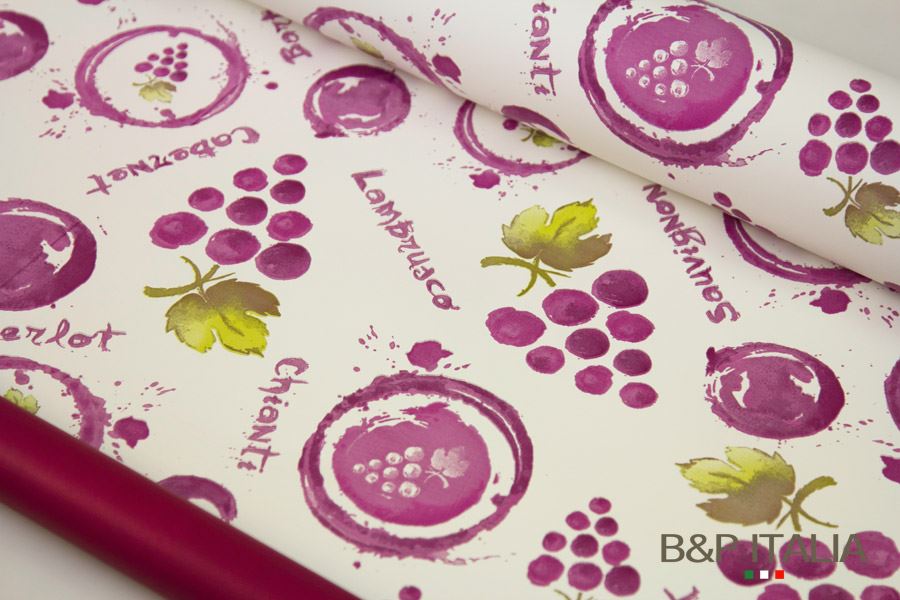 Panna e vinaccia. Altezza 100cm x 60m. Essenza Uva. Spessore 50 micron. 100% resistente all'acqua.